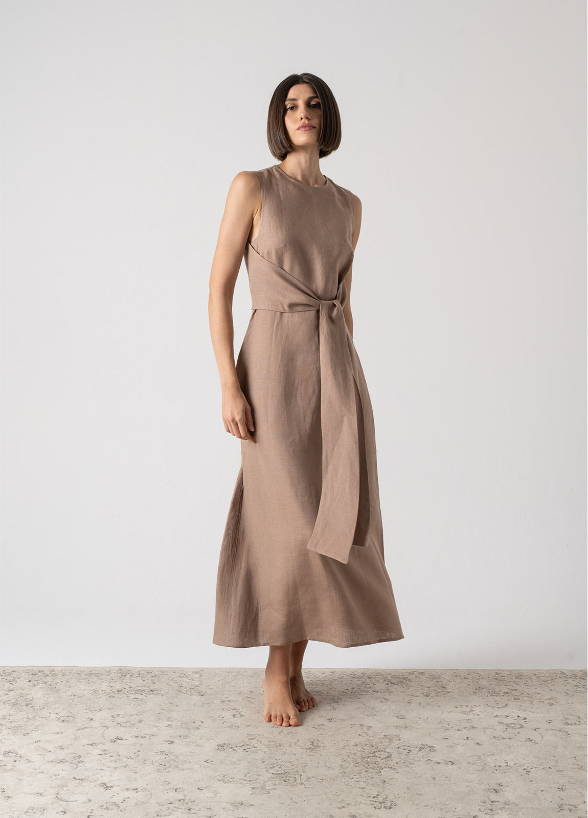This luxury linen dress is a perfect blend of elegance and comfort. Crafted from high-quality, heavier linen, it offers a surprising level of warmth, making it versatile for cooler days. The tailored fit and soft lining provide both style and comfort, while the natural texture of the linen adds a sophisticated touch. Ideal for layering with boots or tights, this dress effortlessly transitions between seasons, offering a chic, timeless look that's both practical and luxurious.