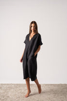 The Vacanza Linen Kaftan is a great addition to your everyday Summer Vacation wardrobe. Made from a mid-weight pure linen fabric, this breathable number features an oversized silhouette, an extremely flattering deep v-neckline and most importantly, inseam side pockets!