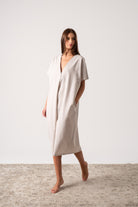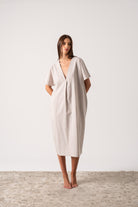 The Vacanza Linen Kaftan is a great addition to your everyday Summer Vacation wardrobe. Made from a mid-weight pure linen fabric, this breathable number features an oversized silhouette, an extremely flattering deep v-neckline and most importantly, inseam side pockets!